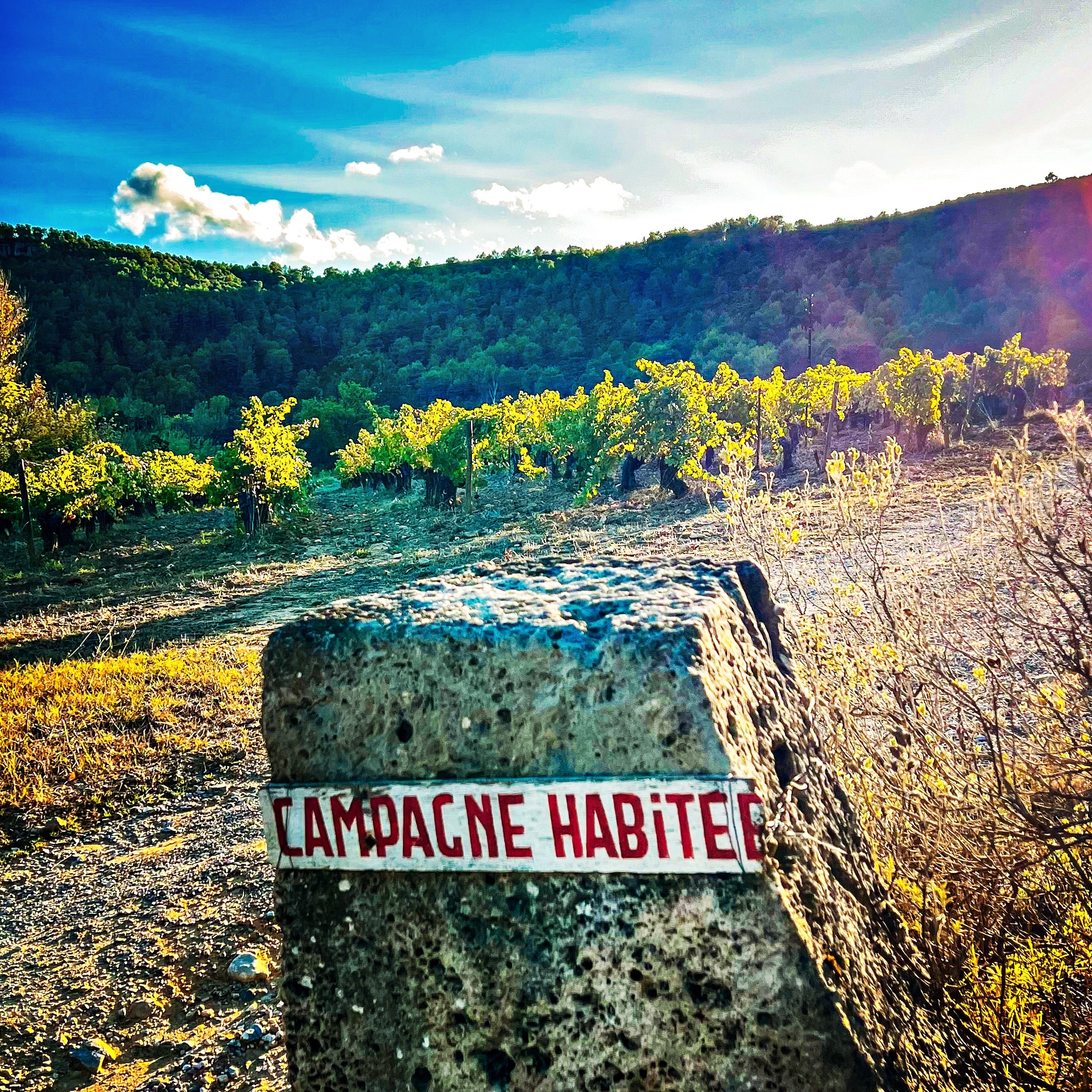 D'abord, aux portes de Saint-Laurent-de-la-Cabrerisse, là où s'ouvre la vallée, il y a cet écriteau peint à la main, sur une pierre de muid: “campagne habitée”. Une campagne, c'est un mas, une ferme, un habitat isolés, à l'image de la villa romaine. Et c'est aussi un message inconscient: